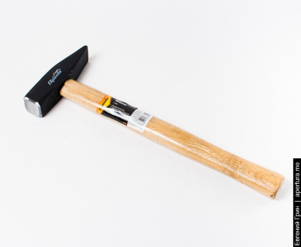 Слесарный молоток весом 0,5 кг это ударный инструмент, который используют для забивания гвоздей, нанесения ударов при рубке, правке и прочих работах. Ударная часть инструмента боек предназначена для забивания, а сужающая часть, служит для раскалывания небольших предметов. Рабочая часть молотка, покрытая черным лаком, выполнена из стали, ручка из древесины. |