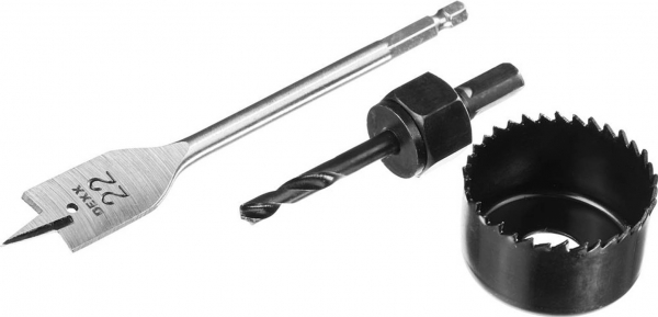 Набор для установки врезных замков, 3 предмета: перовое сверло 22 мм, коронка по дереву 54 мм240 руб.