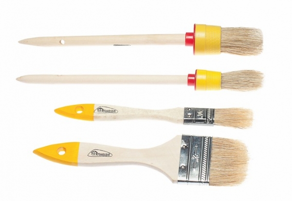 Набор плоских и круглых кистей 4 шт. , пригодится при проведении покрасочных работ. Кисти с натуральной щетиной оптимальны для нанесения составов на основе растворителей, а также масляных красок. С их помощью можно получить равномерное финишное покрытие. ПреимуществаНадежность фиксации щетины обеспечивает металлический бандаж, который обработан антикоррозийным покрытием для защиты от ржавчины. Щетина расщеплена на концах, за счет чего улучшаются краскообменные свойства кистей. В состав набора входят плоские кисти размером- круглые 1 и 2, плоские 3/4,1/5 для удобства работы на разных участках, в том числе труднодоступных и узких. На ручках имеются специальные отверстия, благодаря которым кисти можно хранить в подвешенном состоянии. |