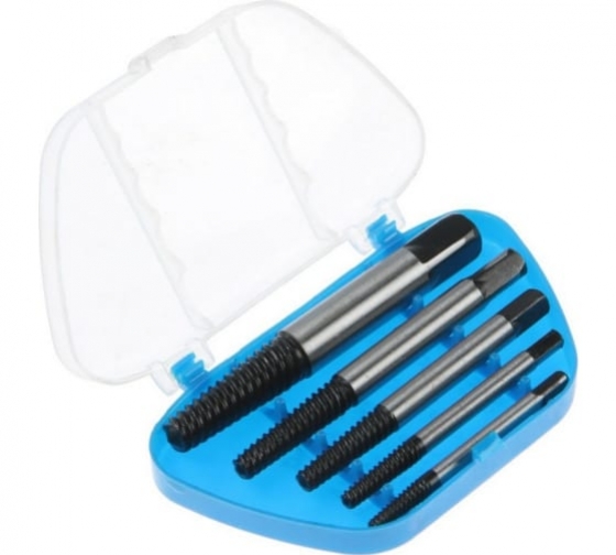Экстракторы позволяют легко извлечь из различных материалов сломанные шурупы. Набор содержит 5 экстракторов диаметрами от 3,3 до 19мм с шестигранными хвостовиками. Для извлечения сломанного метиза в нем сверлится отверстие, в которое вставляется экстрактор и поворачивается против часовой стрелки. Благодаря шестигранному хвостовику инструмент надежно закрепляется в патроне дрели или шуруповерта. |