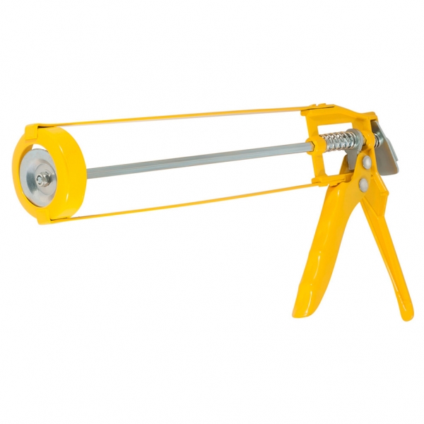 Пистолет для герметика, полукорпусной, гладкий шток. Ручной инструмент для равномерного нанесения и распределения строительных герметиков и клея в картриджах Работы по герметизации швов различного назначения ванная комната, кухня, остекление рам и т.д. Нанесение монтажного клея. |