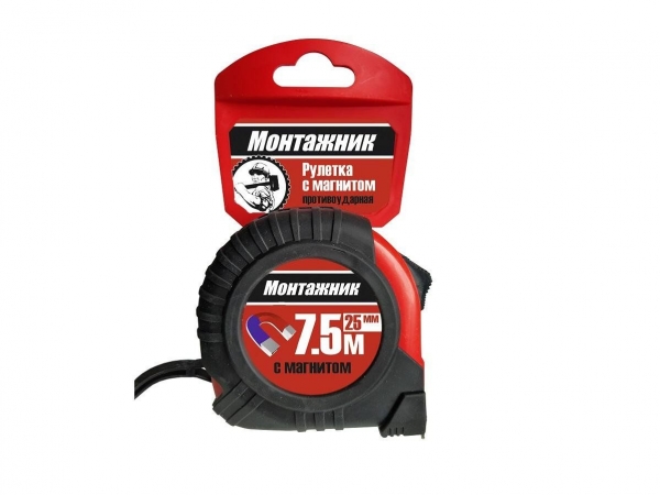 Рулетка с магнитом 7,5м * 25мм Монтажник