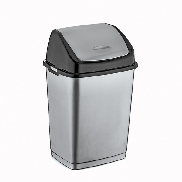 Ведро для мусора с плавающей крышкой прямоуг. 15 л. серо- черное