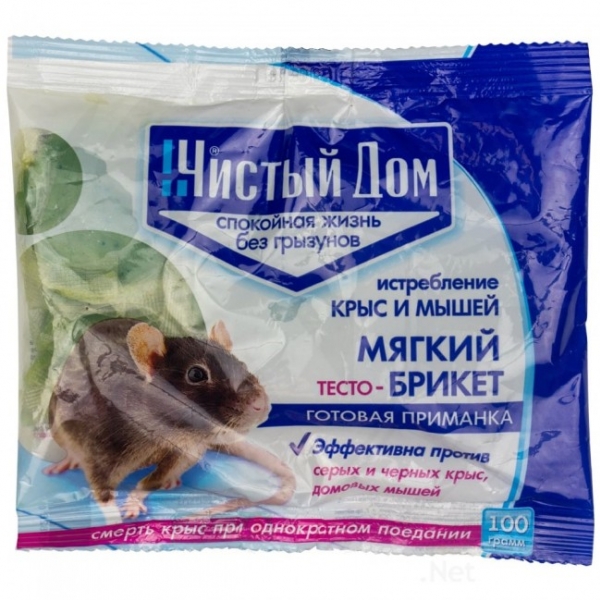 Средство от грызунов Чистый дом тесто-сырный брикет 100 гр./40/45 руб.