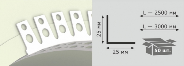 Угол белый штукатурн. арочный перфор.25 х 25 2,5 м/50 шт/33 руб.