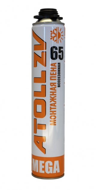 Пена монтажная ATOLL MEGA 65, проф. всесезонная, 850 мл до 65л/12/432 руб.