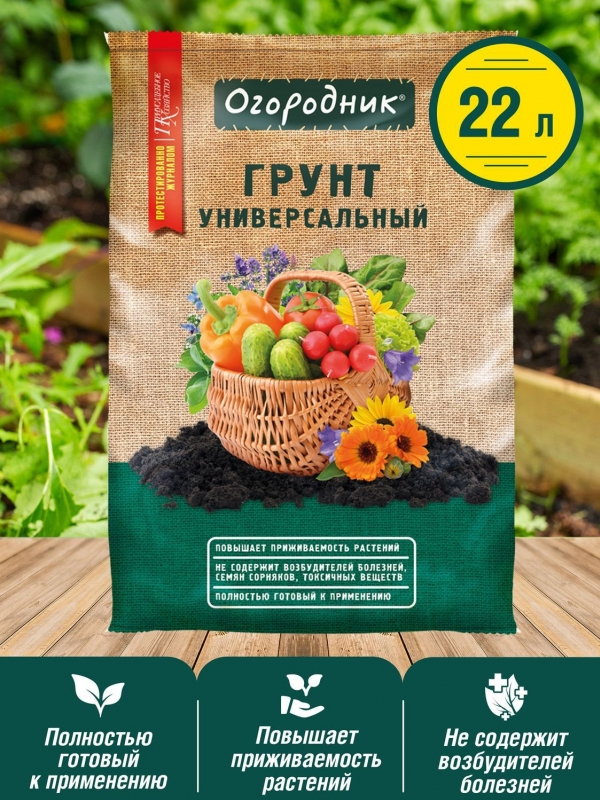Огородник универсальный идеально подходит для посадки и пересадки цветочных, ягодных и овощных культур, полностью готовый к применению питательный почвогрунт, содержащий полный набор питательных веществ, необходимых для полноценного роста и развития растений, стимулирует рост корневой системы. Преимущества: - Повышает приживаемость растений. - Не содержит возбудителей болезней и токсичных веществ. Грунт применяется для посадки и пересадки любых видов комнатных и садовых растений. Содержание доступных для растений питательных элементов, не менее: N - 350 мг/кг, P205 - 400 мг/кг, K20 - 500 мг/кг. pH: 6 – 7. Состав: Торф верховой, торф низинный, песок, известняковая (доломитовая) мука, комплексное минеральное удобрение с микроэлементами. |