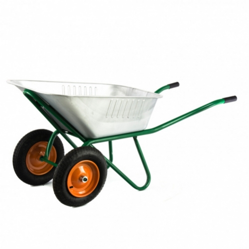Тачка садово строительная предназначена для перевозки различных грузов, строительных материалов, при проведении сельскохозяйственных или строительных работ. Для защиты от коррозии, рама, опора, колесные диски, окрашены порошковой эмалью. Кузов изготовлен из оцинкованной стали,имеет завальцованные борта, которые придают прочность верхнему краю кузова и повышенную стойкость к ударам. Дополнительная пора кузова увеличивает грузоподъемность. Тачка комплектуется двумя пневматическими колесами с камерами. Наличие двух шариковых подшипников в каждом колесе облегчает перемещение тачки с грузом. |
