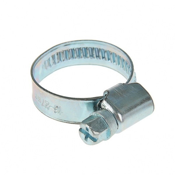 Хомут нерж, диаметр 16-27 мм. Винт /50/100/15 руб.