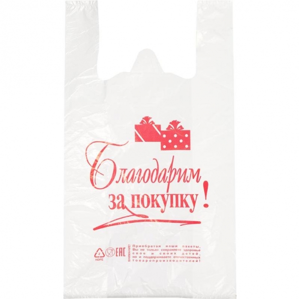 Пакет-майка 30 х 35 х 25 мкм Благодарим за покупку белый /50/5 руб.