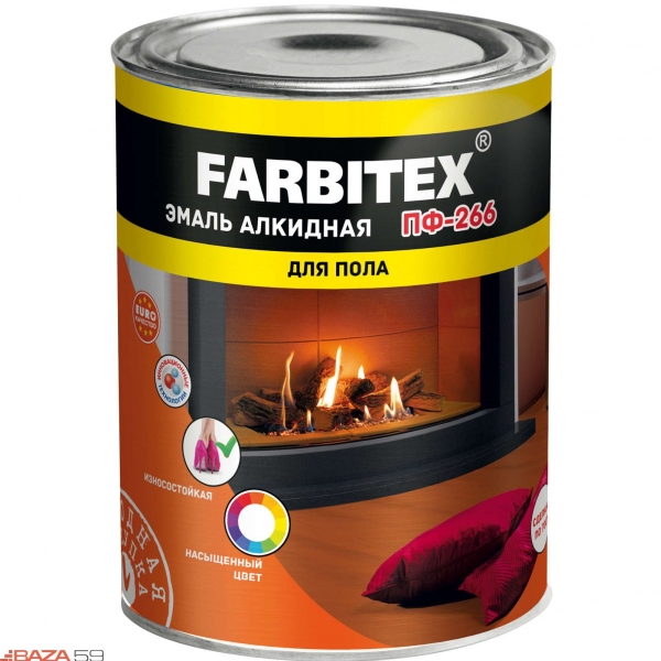 Эмаль алкидная ПФ 266 для пола FARBITEX . Область применения: Предназначена для покрытия окрашенных и неокрашенных полов по предварительно подготовленной поверхности. Свойства: Благодаря использованию импортных добавок и наполнителей отличается особыми защитными и декоративными свойствами. Эмаль имеет блеск, хорошую укрывистость и адгезию к окрашиваемой поверхности. Расход:Расход 100-150 г.м2 на однослойное покрытие. Время высыхания:Время высыхания каждого слоя от пыли при температуре 20 градусов 16-18 часов, полное высыхание 24 часа. Гарантийный срок хранения:Гарантийный срок хранения 24 месяца с даты изготовления. |