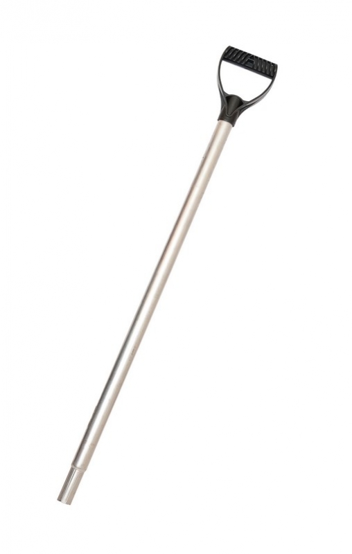 Черенок алюминиевый предназначен для крепления к пластиковым лопатам. Приспособление выполнено из алюминия легкого материала, не дающего лишней нагрузки на руки при работе. Черенок заканчивается эргономичной и крепкой V образной ручкой. |