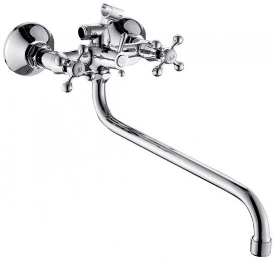 Смеситель для ванны и душа с круглым, длинным изливом и шаровым переключателем для душа. Серебристый кран на ванну с душем изготовлен из качественного цинкового сплава, имеет глянцевое покрытие корпуса хром. Двухручный смеситель для ванной комнаты с душевым гарнитуром снабжен поворотным изливом, на конце носика вкручен съемный аэратор. Запорный механизм, регулирующий температуру и напор воды, кран-букса латунная с керамическими пластинами. Вентильный кран в ванную и душевую комнату с набором для душа. В комплекте гибкий шланг для душа 1,5 метра в металлической оплетке, лейка для душа из абс-пластика 1 режим и держатель для ручной насадки. Душевая система с маховиками монтируется в 2 отверстия и подключается к холодной и горячей воде, эксцентрики переходники 3/4 х 1/2 с декоративными хромированными отражателями входят в комплектация для настенного монтажа крана. Надежная сантехника Эверест B22-065 с двумя крестовыми удобными для захвата ручками бюджетной категории эконом сегмента в квартиру, для дома и дачи. |