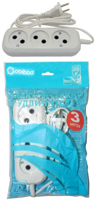 Удлинитель ОБИХОД 3-х местный 3м б/з 1300Вт 6А114 руб.