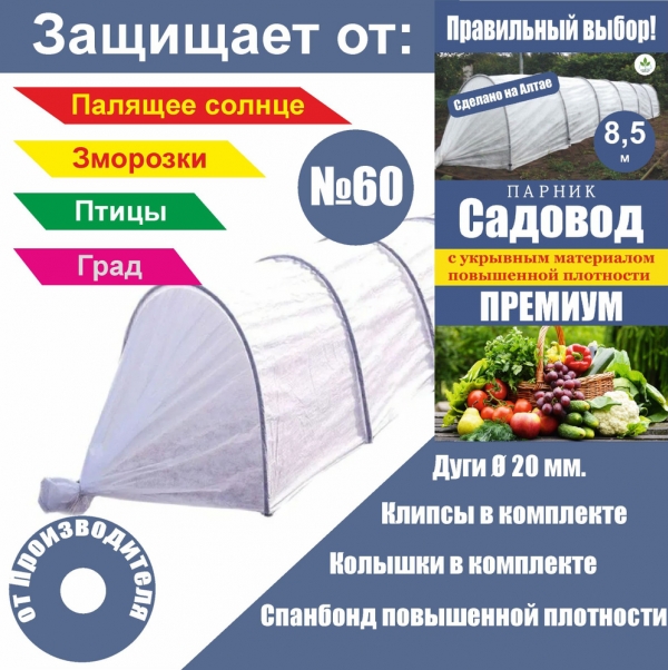 Парник Садовод Премиум 8-секции №60 ПНД дуга 9шт. д.20мм С/КОЛ