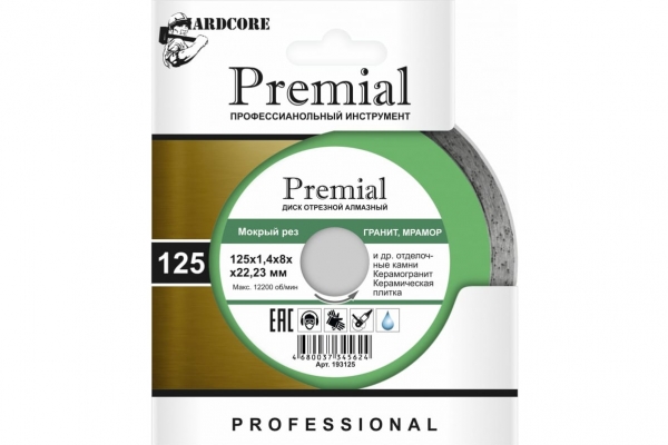 Диск алмазный PROFI 125*22*1,2мм по керамике, граниту HARDCORE PREMIAL