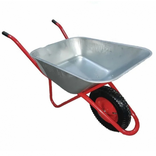 Тачка садово строительная предназначена для перевозки различных грузов, строительных материалов, при проведении сельскохозяйственных или строительных работ. Для защиты от коррозии, рама, опора, колесные диски, окрашены порошковой эмалью. Кузов изготовлен из оцинкованной стали,имеет завальцованные борта, которые придают прочность верхнему краю кузова и повышенную стойкость к ударам. Дополнительная пора кузова увеличивает грузоподъемность. Тачка комплектуется двумя пневматическими колесами с камерами. Наличие двух шариковых подшипников в каждом колесе облегчает перемещение тачки с грузом. |