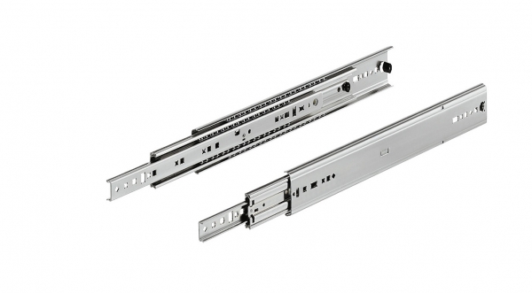 Шариковые направляющие для ящиков полного выдвижения 45 х 400 мм. Шариковые направляющие для мебели подходят, как для замены старых направляющих, так и для замены с роликовых. Направляющие для выдвижнх ящиков имеют свой, отличный от других, принцип действия. Для движения ящика в этом механизме используются шарики, они расположены в несколько рядов. Шариковые направляющие выдвижгаются на полную длину ящика, двигаются бесшумно и плавно. Важным преимуществом шариковых направляющих является возможность полного доступа к ящику и всему содержимому. Специальный стопор установленный в направляющих, позволяет надежно фиксировать ящик в закрытом состоянии. Телескопический механизм включает в себя тормозную систему и противовес. Такое техническое решение позволяет не беспокоиться о длине выдвижения ящика и нагрузке на него. Направляющие для ящика выдерживают нагрузку до 25 кг на пару. Направляющие шариковые полного выдвижения для мебели, шариковые направляющие 400 мм, направляющие для мебели, направляющие для ящика, направляющие для комода, направляющие в ящик комода, направляющие для мебели, шариковые направляющие для ящиков, направляющие для ящиков 350, телескопические направляющие, мебельные направляющие, фурнитура для мебели направляющие, направляющие для ящиков, шариковые направляющие полного выдвижения, направляющие для полок, мебельная фурнитура , |