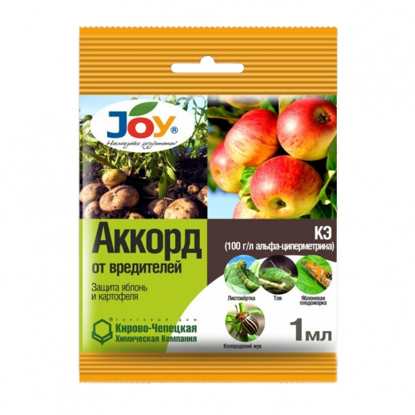 Средство от колорадского жука JOY Аккорд амп.1 мл.(листовертка,тля,яблоневая плодожорка)/50шт/18 руб.
