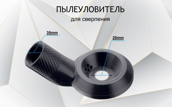 Пылеотвод для сверления-насадка на пылесос присасывающаяся – это приспособление, благодаря которому во время выполнения работ по сверлению отверстий в стене, больше ненужно кого-то просить подержать шланг пылесоса для удаления пыли или заниматься долгой уборкой пыли из труднодоступных мест За счет работы пылесоса, данная насадка «присасывается» к стене (любой ровной поверхности) и обеспечивает полное удаление пыли образующийся во время сверления отверстий перфоратором, дрелью или шуруповёртом. Благодаря расположению отверстий на 180 градусов, насадку можно расположить и под углом к месту сверления. Насадка имеет внутренний диаметр отверстия для шланга пылесоса 32-35 мм и подходит для сверла или бура до 33 мм. Корпус насадки изготовлен по технологии FDM печати на профессиональном 3D принтере с высотой слоя не более 0,2 мм, что обеспечивает высокую прочность и износостойкость детали. Фактический цвет товара может незначительно отличаться (оттенком) от цвета товара на фотографии. |