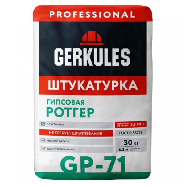 Штукатурка гипсовая Ротгер PRO GP-71. 30 кг/Геркулес/45/605 руб.