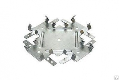 Одноуровневый соединитель краб предназначен для крестообразного соединения потолочных конструкций на одном уровне и во взаимно перпендикулярных направлениях. Он изготовлен из высококачественной, устойчивой к коррозии и другим неблагоприятным образованиям оцинкованной стали, весит всего 0,09 кг. Элемент надежно соединяется с профилем при помощи сгибающихся фиксирующих лепестков, а также саморезов по металлу, используется при монтаже каркаса из профиля ПП 60х27 мм. Стальной соединитель имеет толщину 0,55 мм, незаменим в каркасе подвесных потолков из гипсокартона и в процессе соединения отрезков несущих потолочных профилей. |