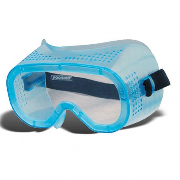 Лёгкие очки с непрямой вентиляцией в мягком корпусе из ПВХ и регулируемой наголовной лентой с защитным стеклом из бесцветного поликарбоната. Защита от механического повреждения высокоскоростными летящими частицами со среднеэнергетическим ударом, устойчивы к растворам кислот и щелочей. |