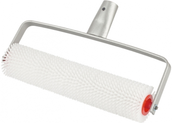Игольчатый валик для наливных полов на металлической рамке 72х300 мм инструмент с длиной иголок 13 мм для прокатывания жидкого наливного покрытия. Такой валик позволяет равномерно распределить состав и устранить воздушные пузырьки, что обеспечивает прочность покрытия. Рукоять предусматривает использование валика совместно с телескопическим удлинителем. |