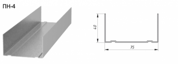 Профиль направляющий ПН 75 х 40 х 3000 0,5мм/16/320/230 руб.