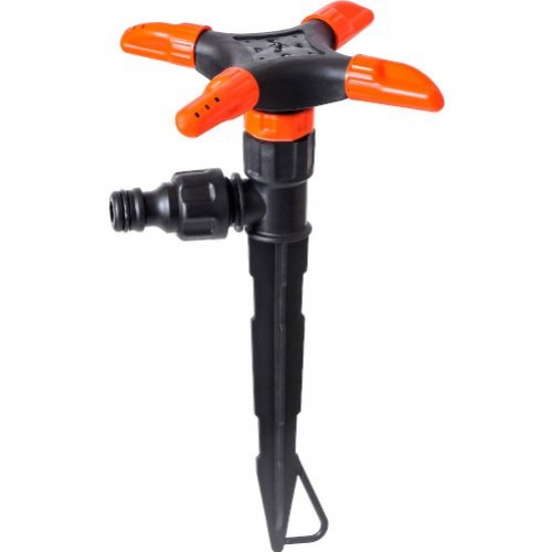 Разбрызгиватель для полива газона и огорода.Комплектация: 4-х лепестковый распылитель с универсальным штуцером для подключения шланга диаметром 1/2 и 3/4.Распылитель 4-х лепестковый Жук Cicle предназначен для стационарного полива растений в клумбах и различных небольших участках. Четыре вращающихся сопла осуществляют равномерный круговой полив сада. Подходит для шлангов диаметром 1/2 и 3/4. Благодаря специальному колышку происходит надежное крепление аппарата к поверхности. Приспособление позволяет значительно экономить время и силы, затрачиваемые на полив растений. Нужно просто включить распылитель и можно заниматься другими делами в то время, как будет проходить полив. Приспособление выполнено из пластика. |