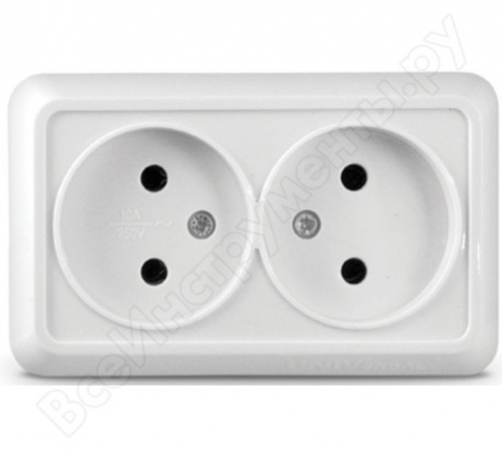 Розетка двойная без заземления, наружной установки, цвет слоновая кость, без защитных шторок. Предназначена для сетей до 250 В на ток до 16 А. Двухместная розетка позволяет подключить два устройства одновременно. Изготовлена из ABS пластика, проста в установке, прочна и надежна в применении. Сделано в России. |