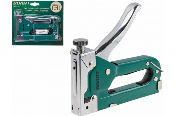 Степлер строительный пистолет скобозабивной ВОЛАТ используется для моментального крепления всевозможных материалов к дереву, древесноволокнистой поверхности, пластику, гипсокартону и т.д. Плавная регулировка силы удара. Тип ударного механизма - витая пружина. Корпус степлера выполнен из металла. |