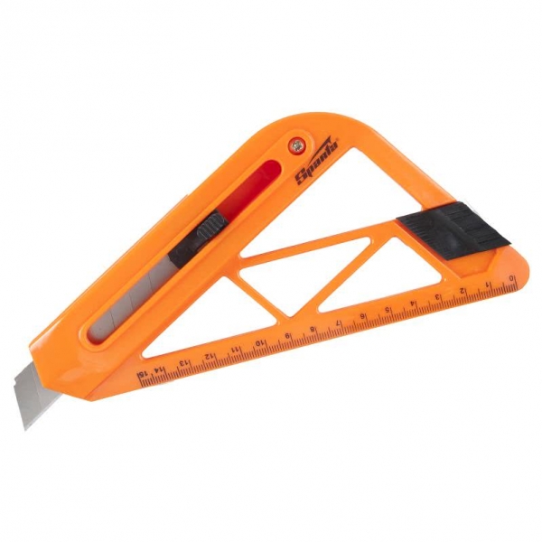 Нож с выдвижным лезвием шириной 18 мм и линейкой предназначен для резки обоев, раскроя линолеума и других материалов. Встроенная линейка с миллиметровой шкалой позволяет контролировать величину разреза. Нож будет полезен при проведении отделочных работ.ПреимуществаЛезвие толщиной 0,5 мм из высокоуглеродистой стали 60 долго сохраняет режущую способность.Выдвижное лезвие снабжено автоматическим фиксатором, удерживающим его в рабочем положении.Сегментированное полотно не требует заточки, а затупившийся сегмент просто отламывают.Благодаря ярко-желтому цвету корпуса нож не затеряется в рабочем пространстве. |