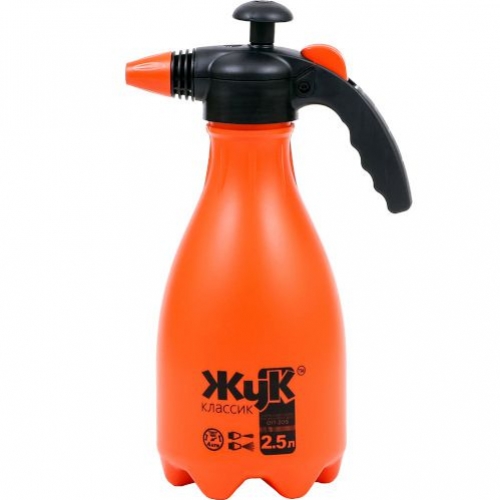 Опрыскиватель ЖУК служит для опрыскивания, подкормки и полива домашних и садовых растений, а также для хозяйственных работ. С помощью насоса создаётся давление в баке, распыл жидкости осуществляется нажатием на клавишу ручки. Узкая горловина бака, удобна для закручивания и откручивания опрыскивателя; Дизайн бачка выполнен в виде бака с подставкой для устойчивости при эксплуатации; Эргономичная ручка, с которой удерживать опрыскиватель во время работы очень удобно; Предохранительный клапан срабатывает при избыточном давлении, что обеспечивает безопасность в процессе эксплуатации опрыскивателя. Предохранительный клапан утоплен, поэтому при накачивании, выступающая часть клапана не задевает руку пользователя; Регулировка распыла от струи до тумана даёт возможность использовать опрыскиватель, как для защиты растений от вредителей, так и для полива; Плавные углубления на рассеивающей гайке распылителя обеспечивают удобную регулировку распыла при работе |