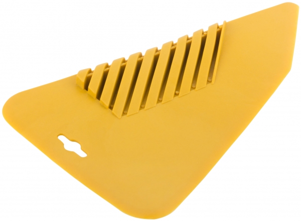 Шпатель отечественного производства изготовлен из качественного эластичного пластика. Инструмент используют для разглаживания и плотного прикатывания обоев к стене в процессе их наклеивания. С его помощью клей равномерно распределяют по стене и удаляют пузырьки воздуха из под обоев. У шпателя удобная ребристая рукоятка, он хорошо держится в руке и не выскальзывает во время работы. Благодаря тонким, но не острым кромкам можно плотно прижать стыки обоев, чтобы они хорошо приклеились. |