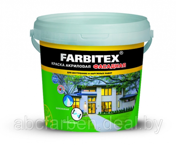 Краска фасадная белоснежная 3,0 кг/6/FARBITEX/540 руб.