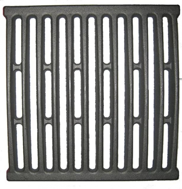 Колосник предназначен для дров. Решетки колосниковые выполняются цельными из чугуна. В решетках имеются пазы, через которые подается воздух к топливу и просыпается зола в поддувало. Укладываются решетки над поддувалом так, чтобы их пазы были направлены вдоль топливника от дверки к задней стенке. Конструкция решетки обеспечивает равномерное горение по всей площади топливника. |