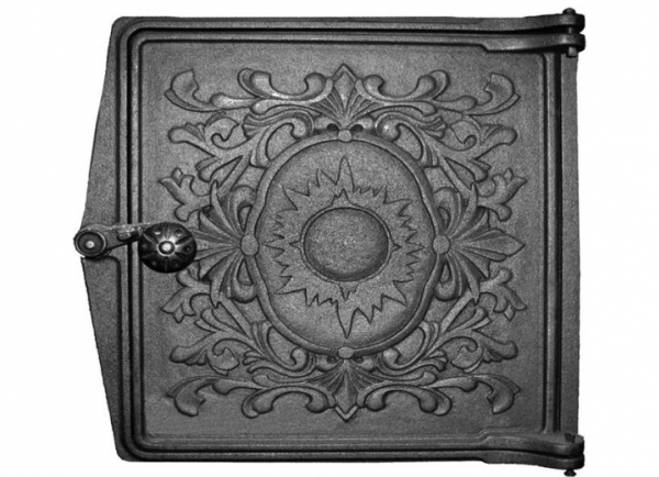 Топочные дверцы, изготовленные из чугуна, наиболее практичны и долговечны. Чугун имеет высокую теплоёмкость и теплоотдачу, устойчив к коррозии и деформации при интенсивном нагреве, что делает металл идеальным материалом для изготовления печного литья. В большинстве своём дверки оформлены барельефным рисунком, являющимся как украшением печи, так и рёбрами жёсткости, которые предотвращают деформацию металла при нагреве.. Преимущество топочных дверок в том, что на их лицевой стороне симметричный рисунок, дверку с таким рисунком можно устанавливать как с открыванием влево, так и вправо, для этого необходимо и достаточно только перевернуть дверку и повернуть вертушок на 360 градусов. Вертушок расположен на внешней стороне рамки, поэтому он находится вне зоны действия огня, что позволяет дверке служить по своему назначению более утвержденного срока эксплуатации. |