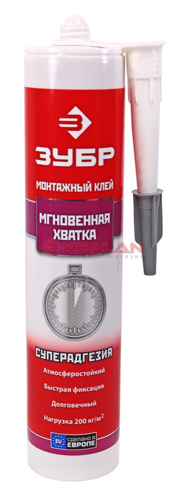 Монтажный клей мгновенная хватка, бежевый, ЗУБР , предназначен для строительства и профессионального использования. Обспечивает высокое первоначальное схватывание. Работает во влажных условиях. Подходит для пористых и непористых материалов. Экологичный (не содержит растворителей). Применяется для монтажа широкого спектра отделочных материалов: метала, дерева, камня, мрамора, кирпича, пластика, МДФ, ДСП на аналогичные поверхности, а также на бетон, штукатурку, любые типы панелей. |