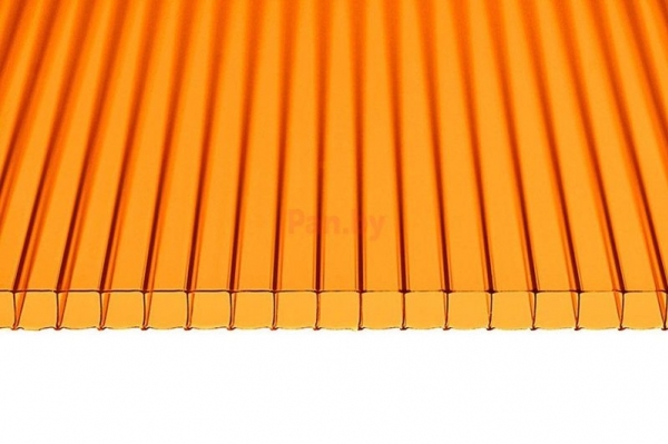 Сотовый, цветной поликарбонат ОРАНЖЕВЫЙ, толщиной 4 мм ,получил широкое распространение в различных сферах, где наряду с прочностью требуется привлекательность конструкций.Представляет собой полые панели, в которых 2 или более тонких слоев поликарбоната соединены продольными ребрами жесткости.Отличается повышенной прочностью и устойчивостью к агрессивным погодным условиям: высокой влажности, перепадам температуры, сильным морозам. Имеет надежную защиту от ультрафиолетового излучения. Хорошая пластичность позволяет монтировать из листов поликарбоната различные арочные конструкции. Листы предназначенны для светопрозрачных ограждающих конструкций зданий стены, кровли, перегородки, навесы и сооружений различного назначения теплицы, мансарды т п. |