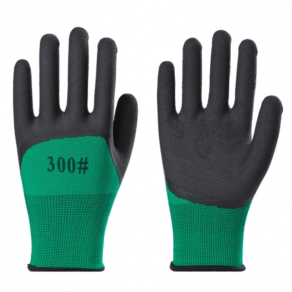 Перчатки нейлон со вспененным покрытием зелено-черные /12/720/