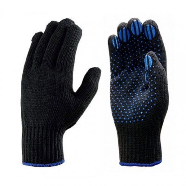 Перчатки трикотаж. ЗИМА двойные с ПВХ №10 черные 130гр./5шт/150/