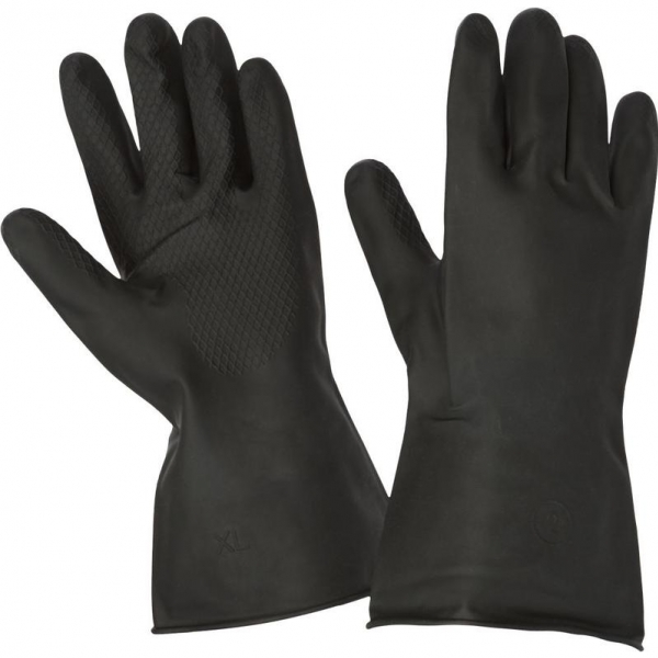 Изготавливаются перчатки из натурального латекса резина. Область применения: химическая промышленность, производство лаков и красок, агрохимия и так далее. Перчатки защищают руки от растворов кислот и щелочей с концентрацией до 20 процентов , сыпучих и красящих химических веществ. Плотные и одновременно эластичные перчатки не уменьшают чувствительность. Изготавливаются на правую и левую руку. Средний срок службы перчаток 8 часов непрерывной работы с 20 процентов растворами кислот или щелочей. |