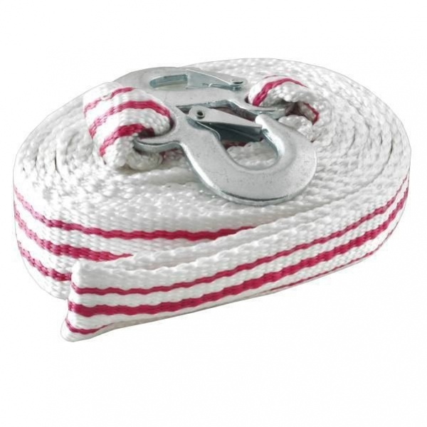 Трос автомобильный буксировочный лента предназначен для буксировки транспортных средств весом до 12 тонн. Соответствует ПДД. Автомобильный буксировочный ремень произведен согласно пункту 20.3 ПДД РФ. Трос буксировочный ленточный представляет собой прочную ленту с двумя крюками тип карабин для обеспечения простой и надежной фиксации и гарантирует надежную и безопасную фиксацию буксировочного троса с автомобилем. Канат выполнен из прочного синтетического материала полипропилена легкого в уходе и хранении. Предназначен для буксировки автомобильной и грузовой техники. Длина буксировочного троса составляет 5 метров. При эксплуатации необходимо избегать рывков и провисания буксировочного троса, а также не допускать попадания под колеса. Усиленный буксировочный трос 12 тонн 5 метров характеризуется устойчивостью к деформации, стойкостью к воздействию грязи и агрессивных сред. Буксировочная лента для авто оснащена 2 металлическими крюками и предназначен для буксировки легковых машин, небольших грузовиков на гибкой сцепке. |