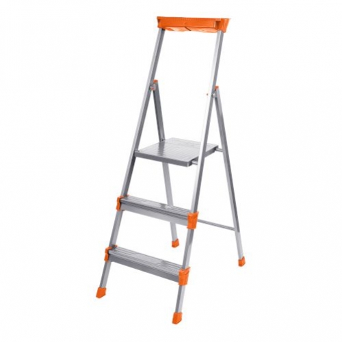 Надежная металлическая конструкция высокая удобная дуга безопасности со встроенным лотком для инвентаря и отделением для инструментов широкая безопасная площадка со встроенными вставками противоскольжения и рифленой поверхностью 3 широкие металлические ступени обеспечат удобство и безопасность подъема и спуска. Стремянка предназначена для использования в быту и при ремонтно-строительных работах в доме и на дачном участке. Она изготовлена из качественного алюминия и выдерживает нагрузку до 150 кг. |