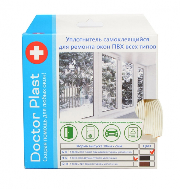 Уплотнитель самокл. для окон Е 10*2мм. 9м. DOCTOR PLAST белый175 руб.