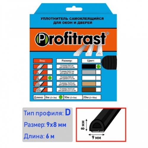 Уплотнитель самокл. для окон и дверей D 9*8мм. 6м. Protitrast черный150 руб.