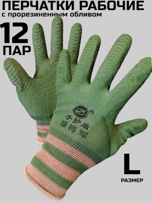 Перчатки нейлон со вспенен. ребристым покрытием, зеленые /12/840/56 руб.