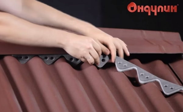 Заполнитель карнизный — доборный элемент кровельной черепичной системы, универсальный, вентилируемый. Используется для заполнения просветов между обрешеткой и битумными листами, а также на внешних изломах и карнизах крыши. |