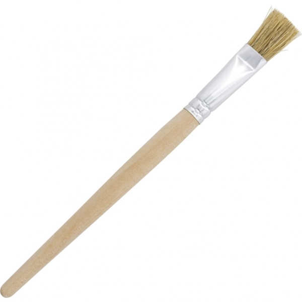 Плоская кисть применяется при выполнении покрасочных работ с применением всех видов лакокрасочных материалов. Изготовлена из натуральной светлой щетины, отлично впитывает, удерживает и распределяет материал по окрашиваемой поверхности. Кисть оснащена деревянной рукояткой с отверстием для подвески. |